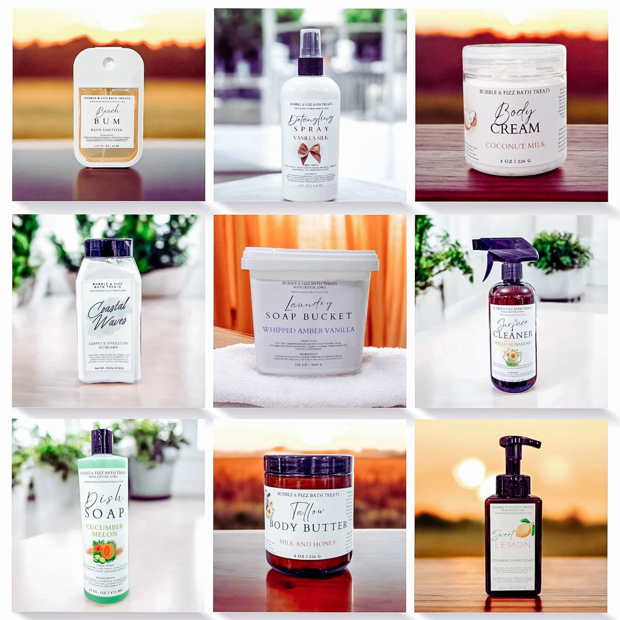Welcome to Bubble & Fizz Bath Treatsβyour destination for handcrafted bath, body, home fragrance, and cleaning essentials. Weβre so glad you stopped by. Take a look around and treat yourself (and your home) to something special!