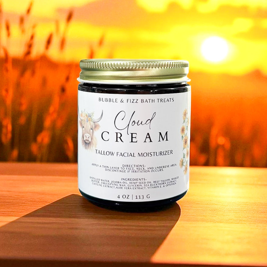 Get ready to experience the ultimate cloud-like hydration for your skin with our Cloud Cream-Tallow Facial Moisturizer. With its unique formula, this moisturizer will leave your skin feeling soft, supple, and radiant all day long. Say goodbye to dry, dull skin and hello to a brighter, more youthful complexion.